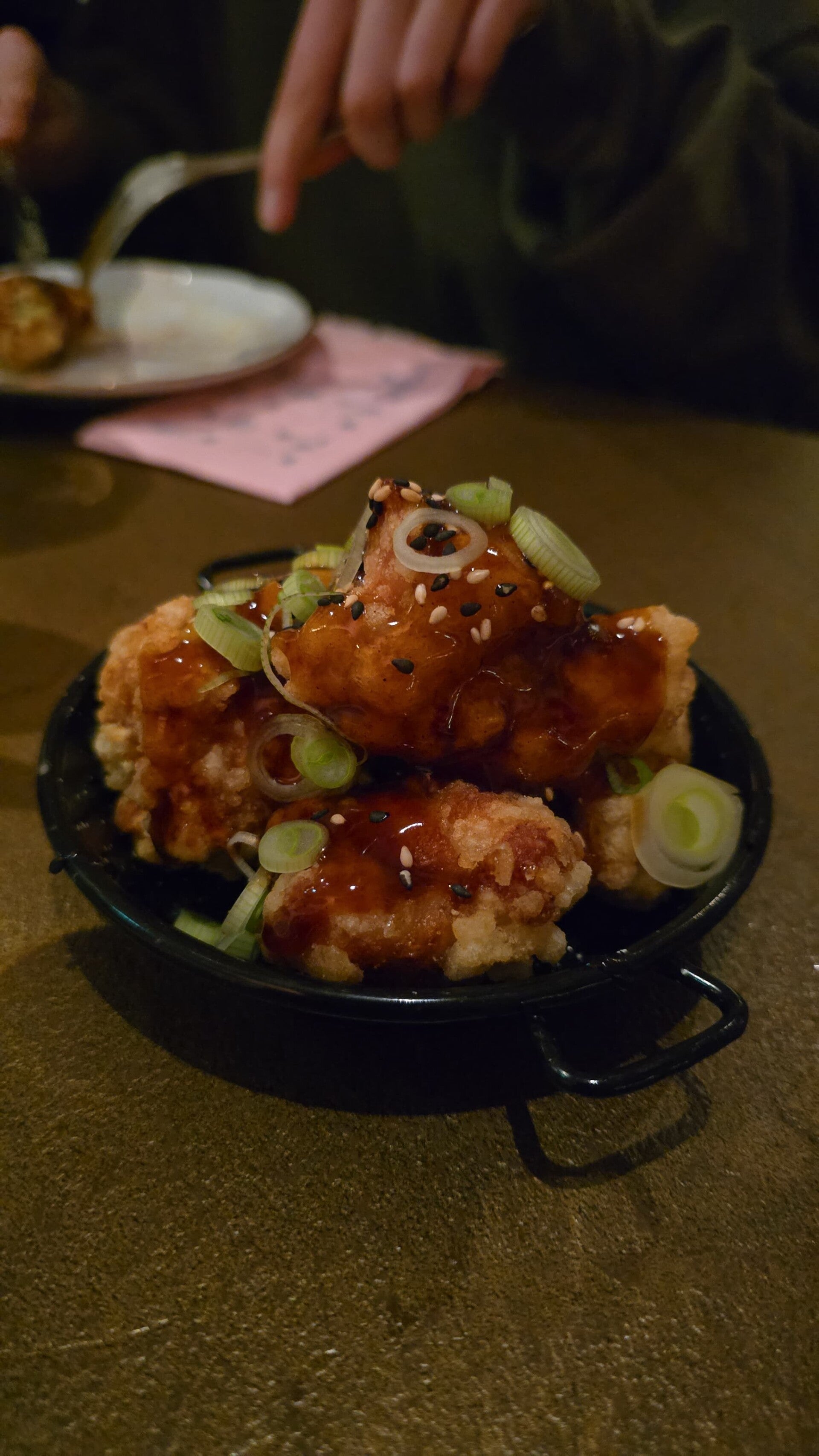 Krokante kip, kimchimayonaise, koolsalade