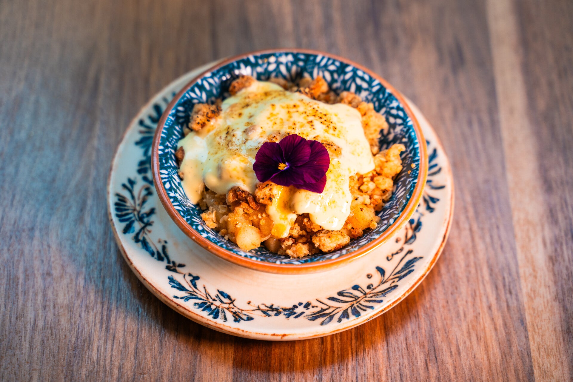 pinda, caramelsaus, vanille-ijs, chocoladesaus