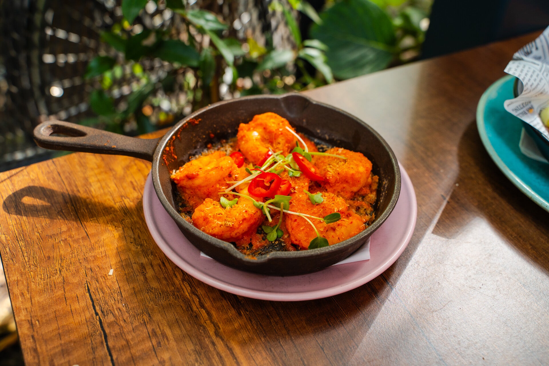 gamba, rode peper, Cress